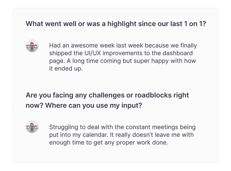 1-on-1s are the royal road to employee engagement. Studies show that employees who meet regularly with their managers are three times more likely to be engaged in their work. But when done poorly, 1-on-1s can quickly become the bane of your team’s existence: draining resources one lousy meeting at a time.