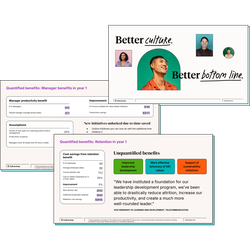 Enhance your business case for culture by sharing quantifiable (and non-quantifiable!) benefits of culture with your fellow executives, board members, and leaders. These ready-to-use slides help you show the retention, productivity, and profitability gains your organization could see by investing in culture. Based on Culture Amp’s ROI calculator and Forrester’s Total Economic Impact of Culture Amp report.