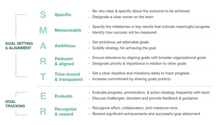 Clarity is the foundation of effective goals and is critical in every aspect of the SMARTER model. It’s necessary to be specific about the long- and short-term objectives you expect to achieve. To do this, you can spell out the strategy for achieving each outcome.