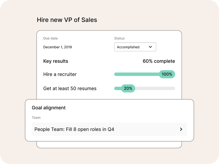 When done properly, OKRs create the critical alignment necessary for employees to understand how their day-to-day responsibilities impact overall business success. By creating a unified, shared vision of success, you can help employees find purpose in their work, drive engagement, and foster a culture of high performance.
