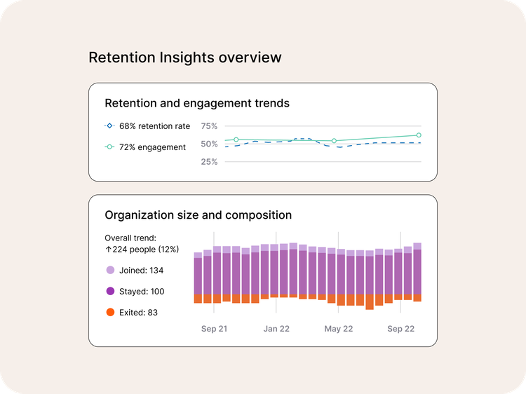 With Retention Insights, you can identify the earliest turnover warning signals and predict which groups are at risk and why. This allows you to drive leadership focus and buy-in for the actions that will keep your most valued people working productively at your company. Plus, you can do all of this from one easy-to-use dashboard that surfaces comprehensive answers to your previously unanswerable turnover questions.